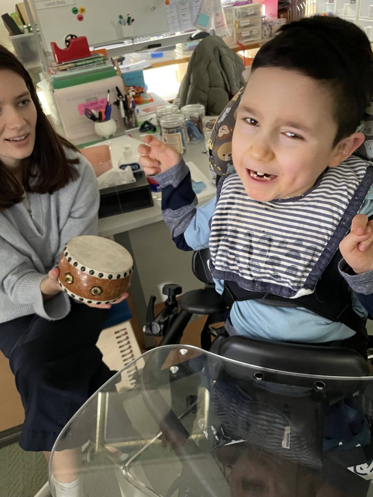 Belmore School currently employs one Registered Music Therapist (RMT) three days per week to design and implement the music therapy program. Each classroom participates in a 1.5-hour group session every week. Based on therapeutic needs, a small number of students also participate in 1:1 programs with the Music Therapist.